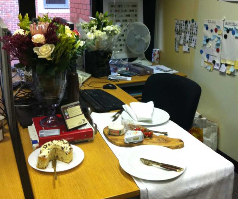 Thank you to my friends from work, my dear friend (and cell mate) Barbara for her gardening tools, Sam for a beautiful picture frame and Farzana for the limited edition champagne.